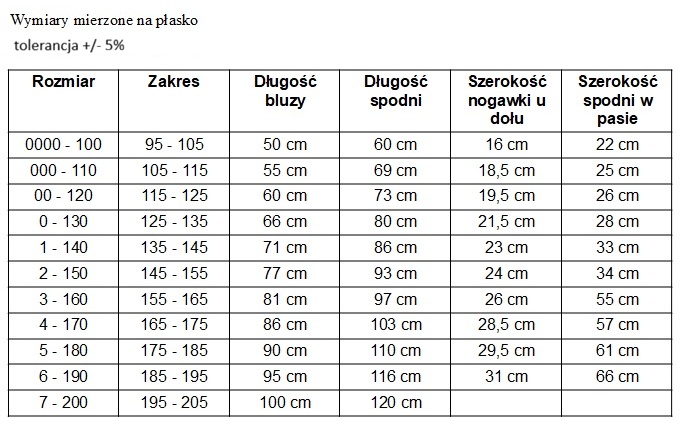 • 100% bawełna (należy pamiętać, że bawełniane stroje kurczą się po pierwszym praniu).